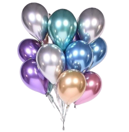 3 фонтана: 1) 6 шт хромированных шаров +2 шт обычных шаров+2 шт с конфетти; 2) 6 шт хромированных шаров+3 шт с конфетти +1 шт звезда из фольги; 3) 9 шт хромированных шаров +3 шт с конфетти и 2 шт метровых цифр +метровый шар с конфетти, с бахромой + коробка для шаров с надписью. Цвет/количество по вашему желанию.
